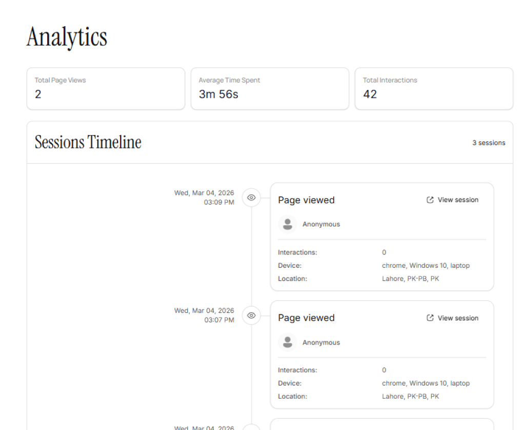 Get real-time alerts when clients view, interact, or engage with your proposals. See exactly where they spend time to understand their needs better.