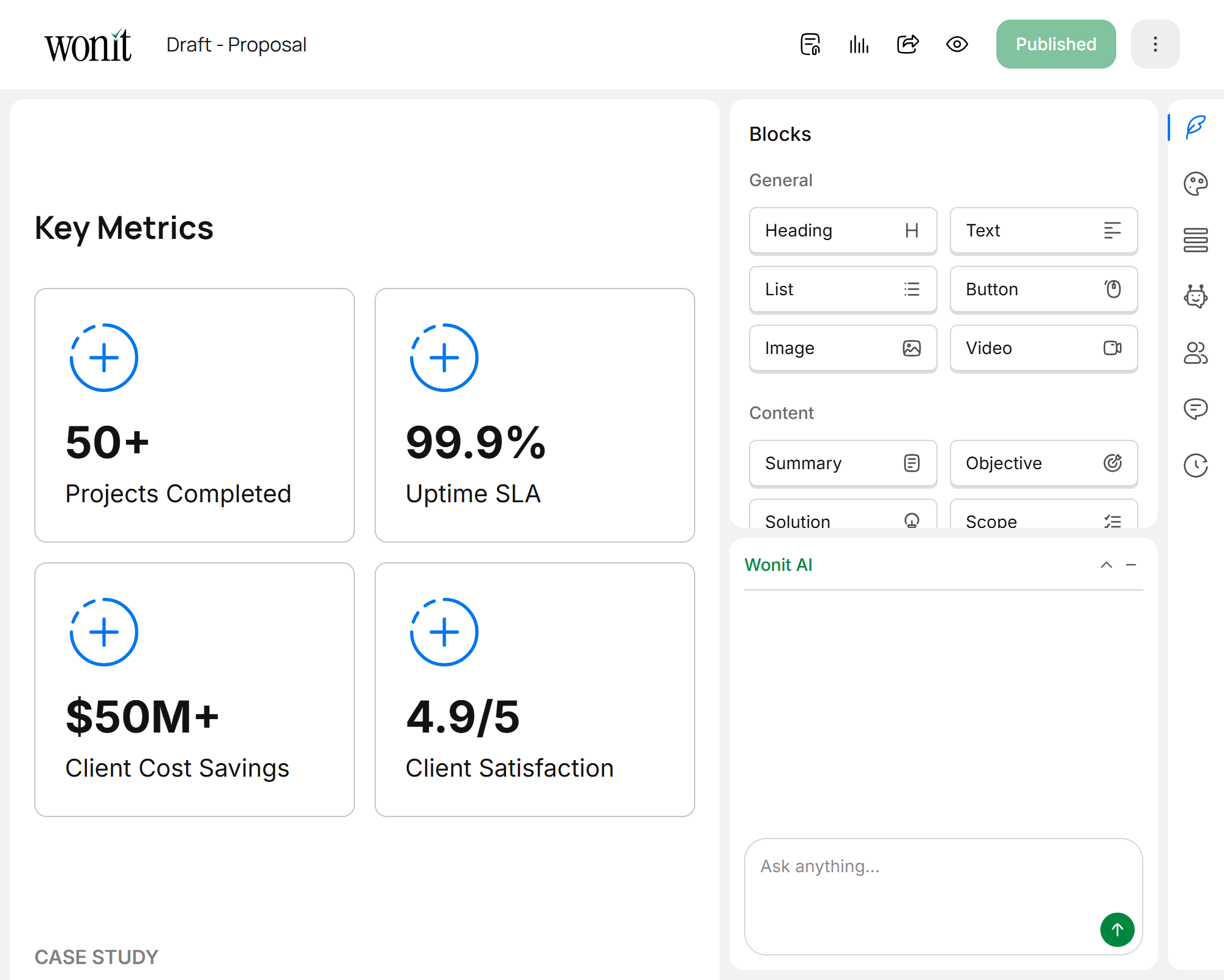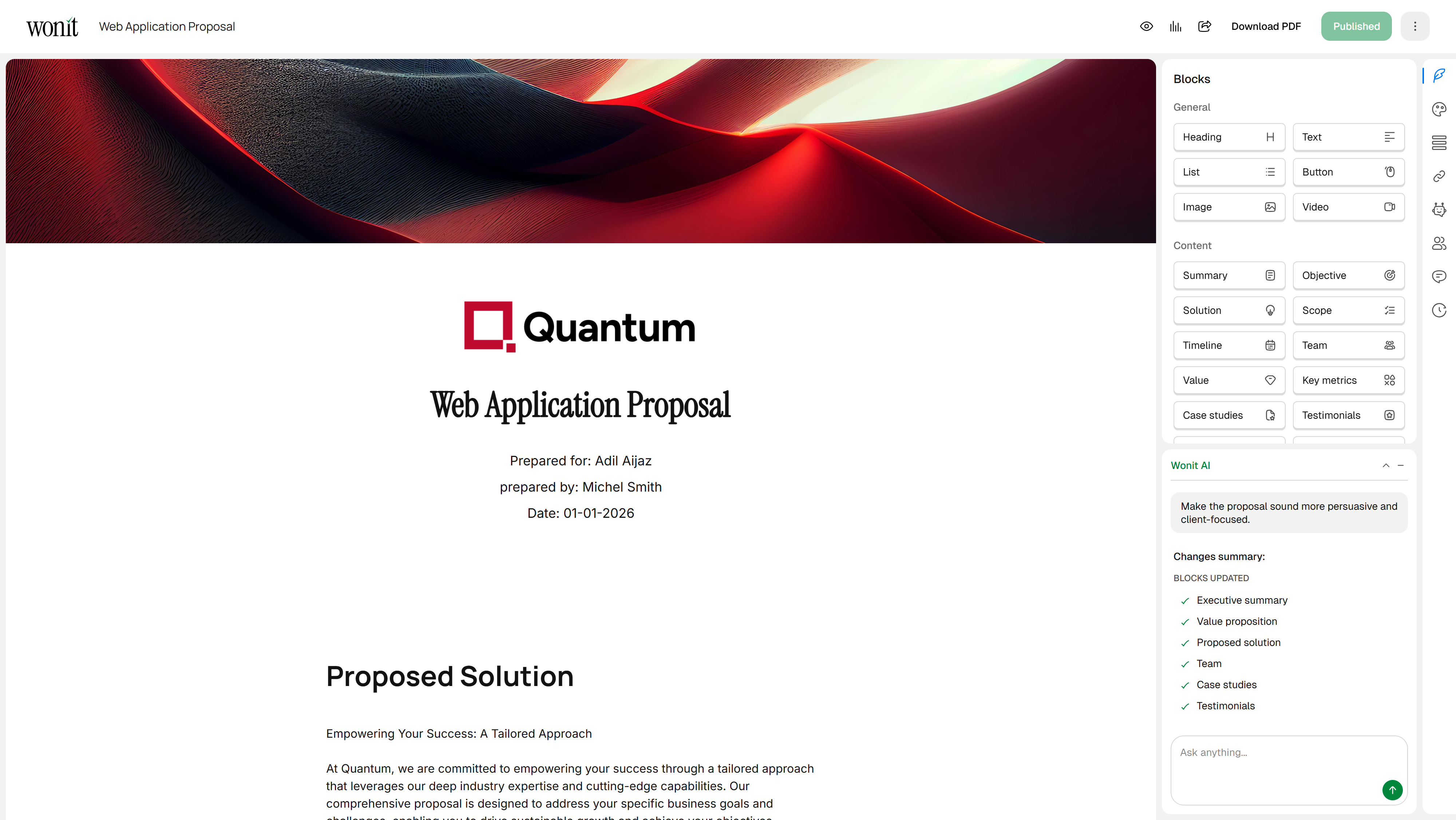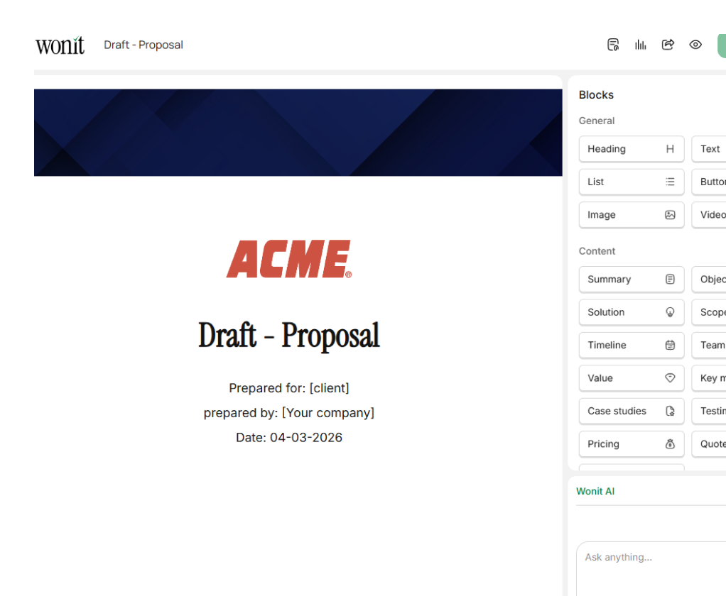 Fully customize proposals with your branding, colors, and messaging to match your brand identity.