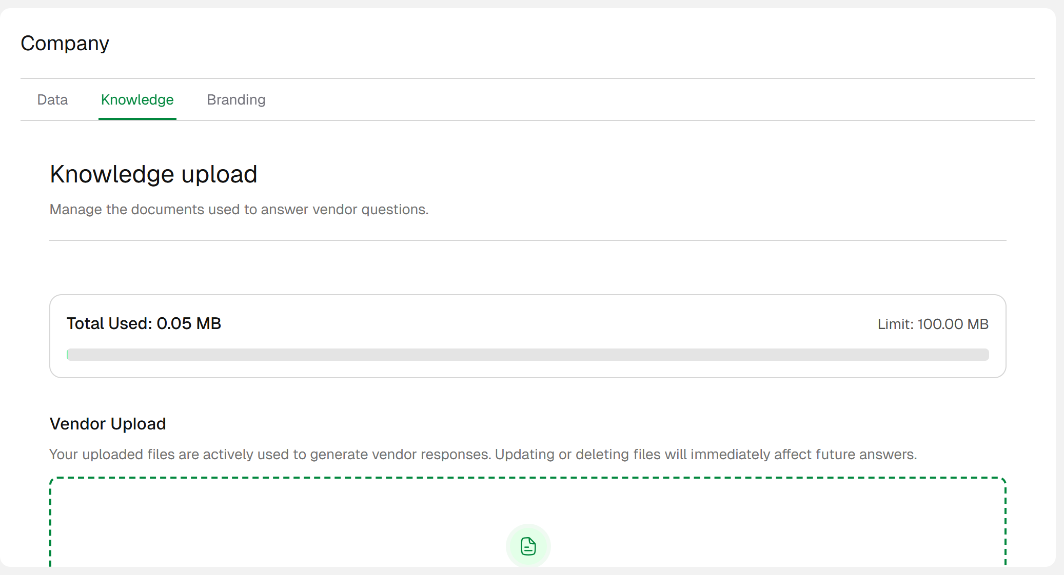 Store approved boilerplate, case studies, compliance answers, and company credentials in one place.
